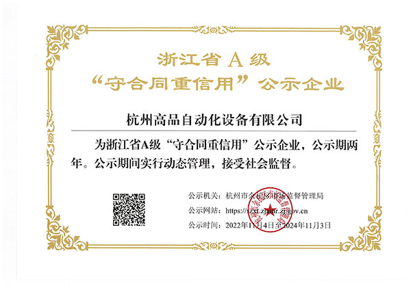恭喜杭州高品自動(dòng)化設(shè)備有限公司榮獲