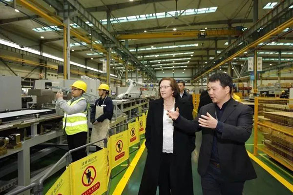 奧的斯全球總裁朱蒂參觀由高品設(shè)計(jì)研發(fā)的電梯裝配線